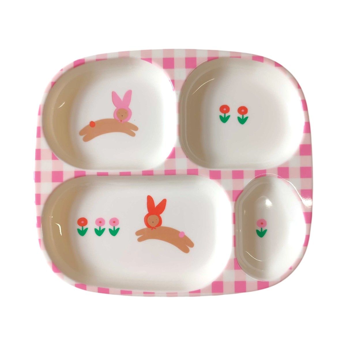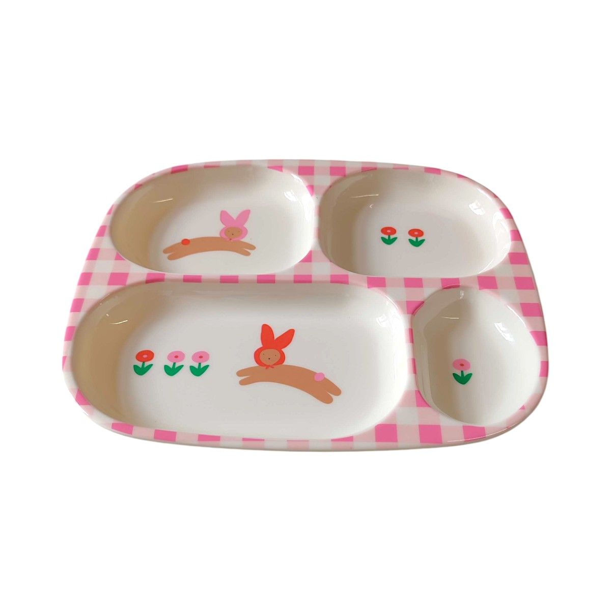 Une assiette à compartiments lapin rose de la marque LE PETIT SOUK, indispensable pour les premiers repas ! Avec ses quatre compartiments, cette assiette en mélamine permet de séparer les différents aliments pour aider les tout-petits à découvrir de nouvelles saveurs. elle transforme chaque repas en un moment ludique et joyeux. Sa forme pratique favorise l'autonomie des enfants qui peuvent picorer à leur rythme ! Retrouvez la marque LE PETIT SOUK chez Bonnie Bonnie !