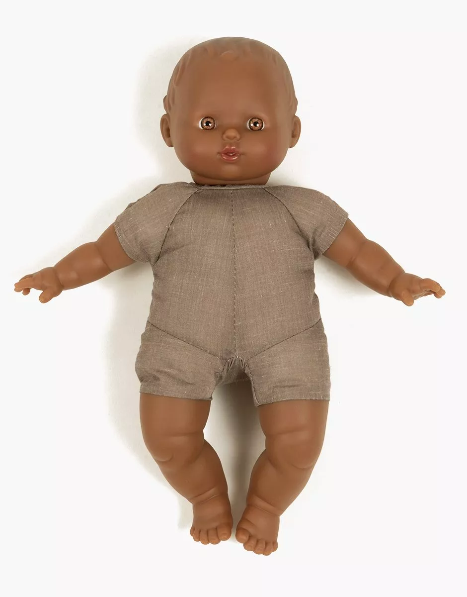 Découvrez Sidonie, la poupée Babies Vintage chic et rétro de 28 cm, de la marque MINIKANE. Avec son corps tout doux en coton ouatiné, sa tête et ses membres en vinyle parfumé à la vanille, et ses yeux noisette charmeurs, Sidonie incarne le compagnon de jeu idéal pour les enfants ! Fabriquée en Espagne et compatible avec l’ensemble du dressing Babies, elle invite aux histoires, aux câlins et aux instants de complicité ! Retrouvez la marque MINIKANE chez Bonnie Bonnie !
