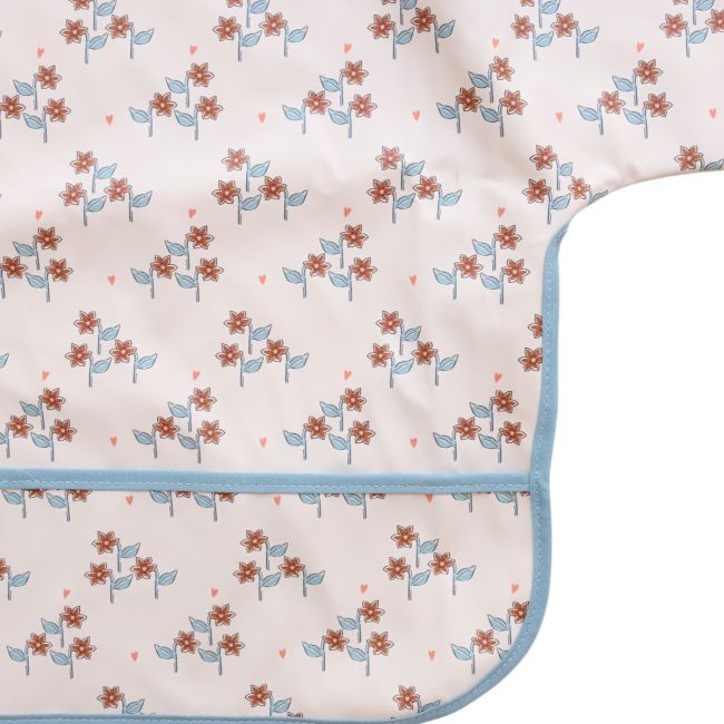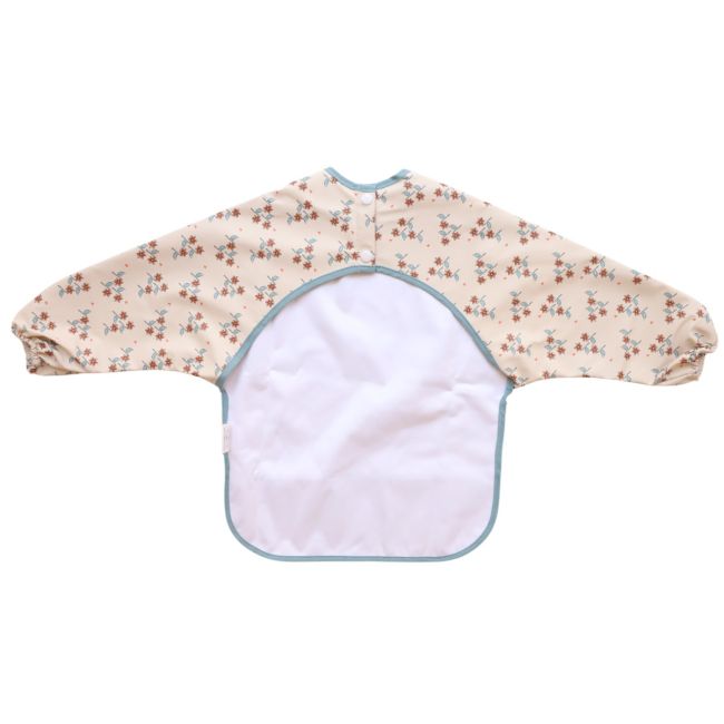 Un joli bavoir tablier manches longues fleuri, pour les tout-petits qui se régalent ! À table ou en pleine activité, ce bavoir tablier à manches longues est le compagnon idéal des enfants de 1 à 3 ans. Inspiré par la douceur de la nature et de la collection "À la cueillette", il arbore de jolis motifs fleuris dans des teintes pastel, comme un petit jardin à porter avec soi ! Facile à enfiler et confortable, il se ferme à l’arrière avec des boutons pression et protège efficacement les vêtements. Son tissu imperméable permet de faire face à tous les petits accidents du quotidien, que ce soit durant le repas ou pendant une séance de peinture. La poche gouttière sur le devant permet de récupérer miettes et éclaboussures, rendant ce bavoir encore plus malin. Une belle idée à ajouter à la liste de naissance ou pour équiper les petits curieux avec style ! A associer à la collection "À la cueillette" Dimensions : 40 x 30 cm (70 manche à manche)