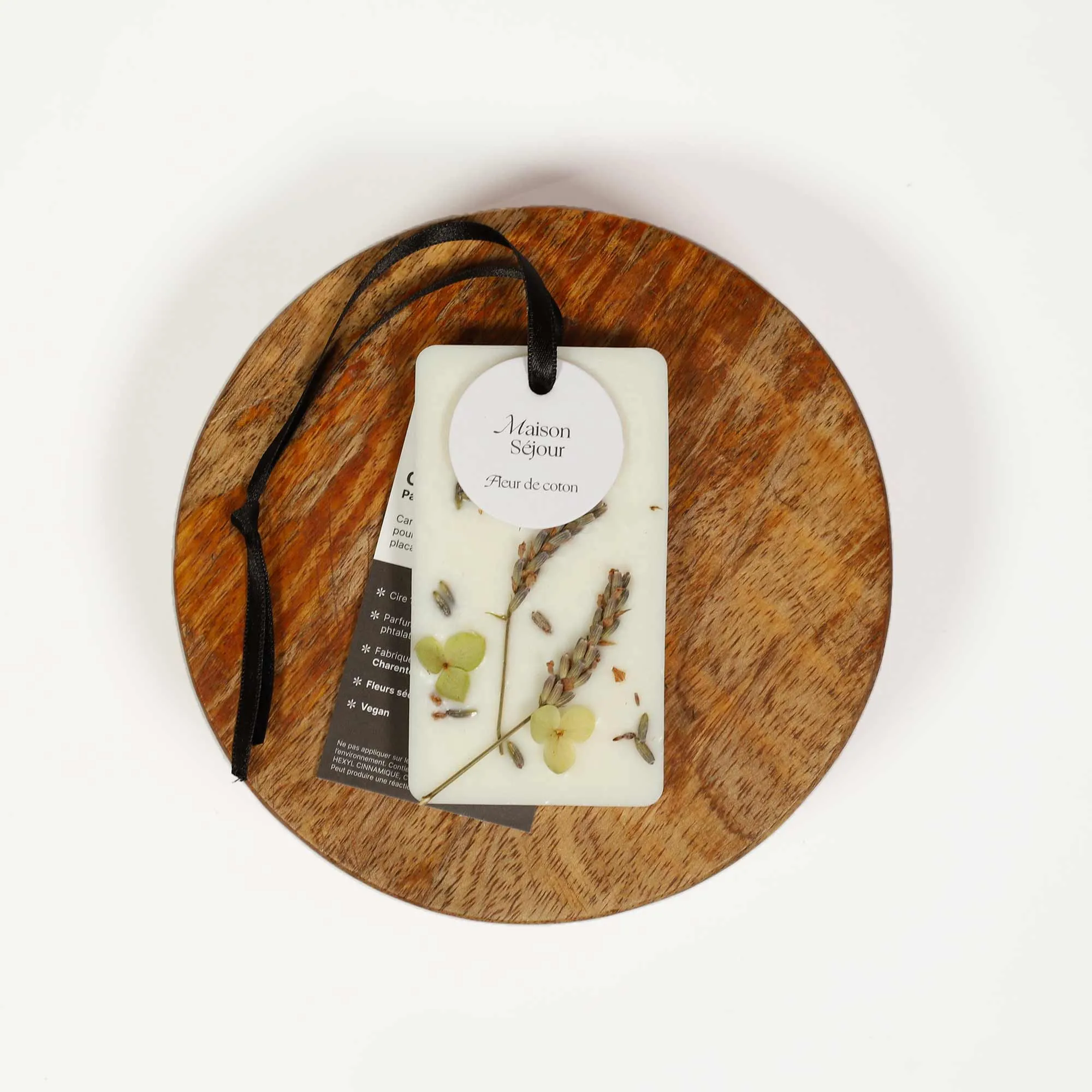 Présentée dans un écrin élégant au gaufrage de cotonniers en fleurs, cette carte s’accroche à l’aide d’un ruban de satin ou se pose simplement dans un tiroir, placard ou coin de pièce. Elle diffuse la fragrance signature “Fleur de coton” d’une tenue d’environ 3 mois.