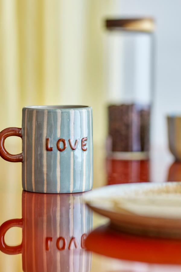Le mug Cherish de Bloomingville, fabriqué en grès robuste avec finition peinte à la main, rend chaque pièce unique. Ses rayures verticales et son design chaleureux apportent caractère et charme à vos pauses boissons chaudes. Avec sa contenance confortable, il est parfait pour le café, le thé ou le chocolat chaud tout en décorant votre cuisine avec style.