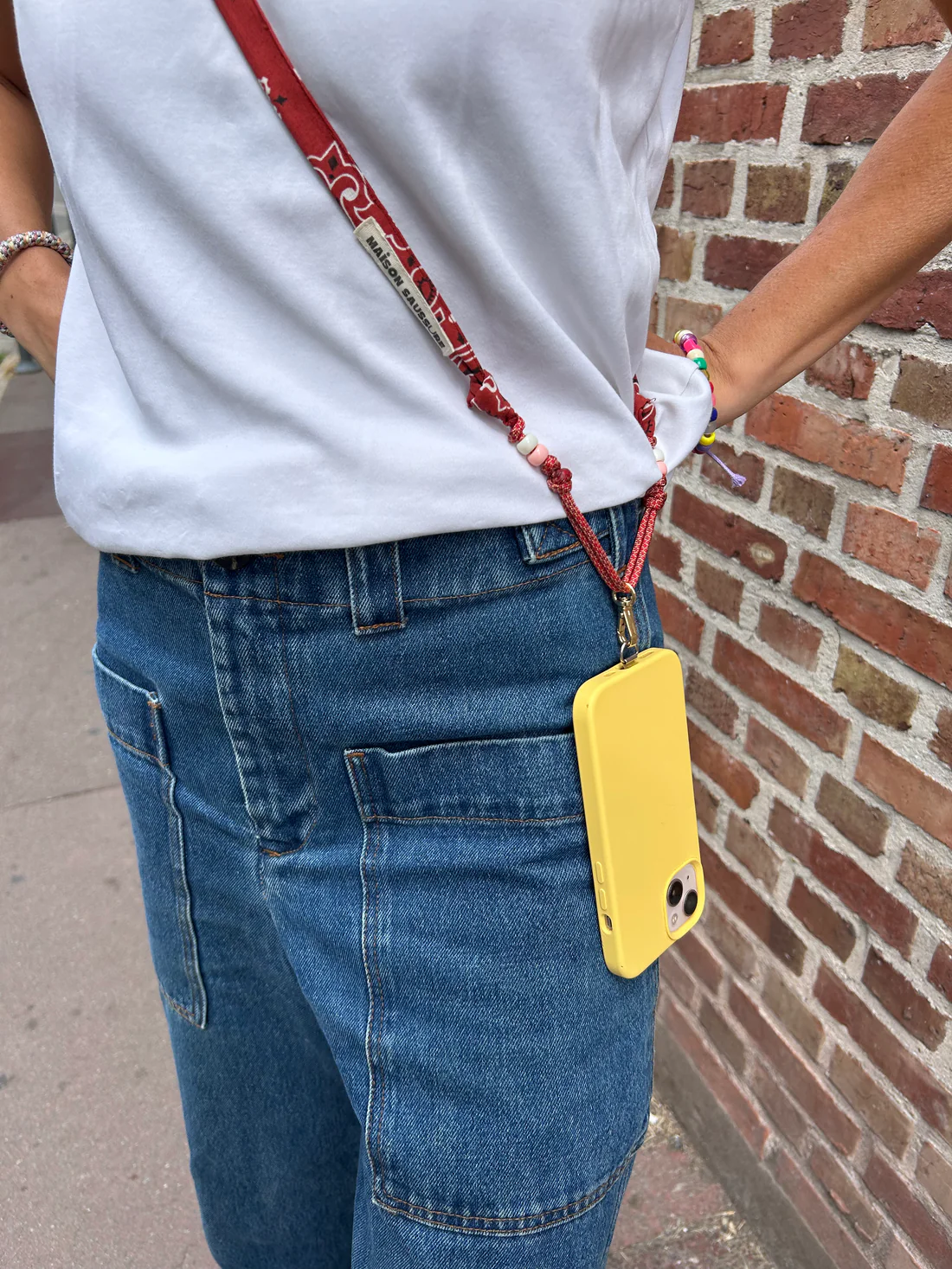 Alliant style et fonctionnalité, ce porte-téléphone en tissu bandana de la marque MAISON SAUSSURE, est l’accessoire parfait pour ceux qui veulent garder leur téléphone à portée de main tout en restant tendance. Confectionné à partir de tissu bandana 100 % coton. Doté d’un cordon ajustable, ce porte-téléphone s’adapte à toutes les morphologies et se porte en bandoulière. Ses couleurs vibrantes et ses motifs emblématiques en font une pièce mode unique, idéale pour vos sorties, vos balades ou vos aventures du quotidien. Retrouvez la marque MAISON SAUSSURE chez Bonnie Bonnie !