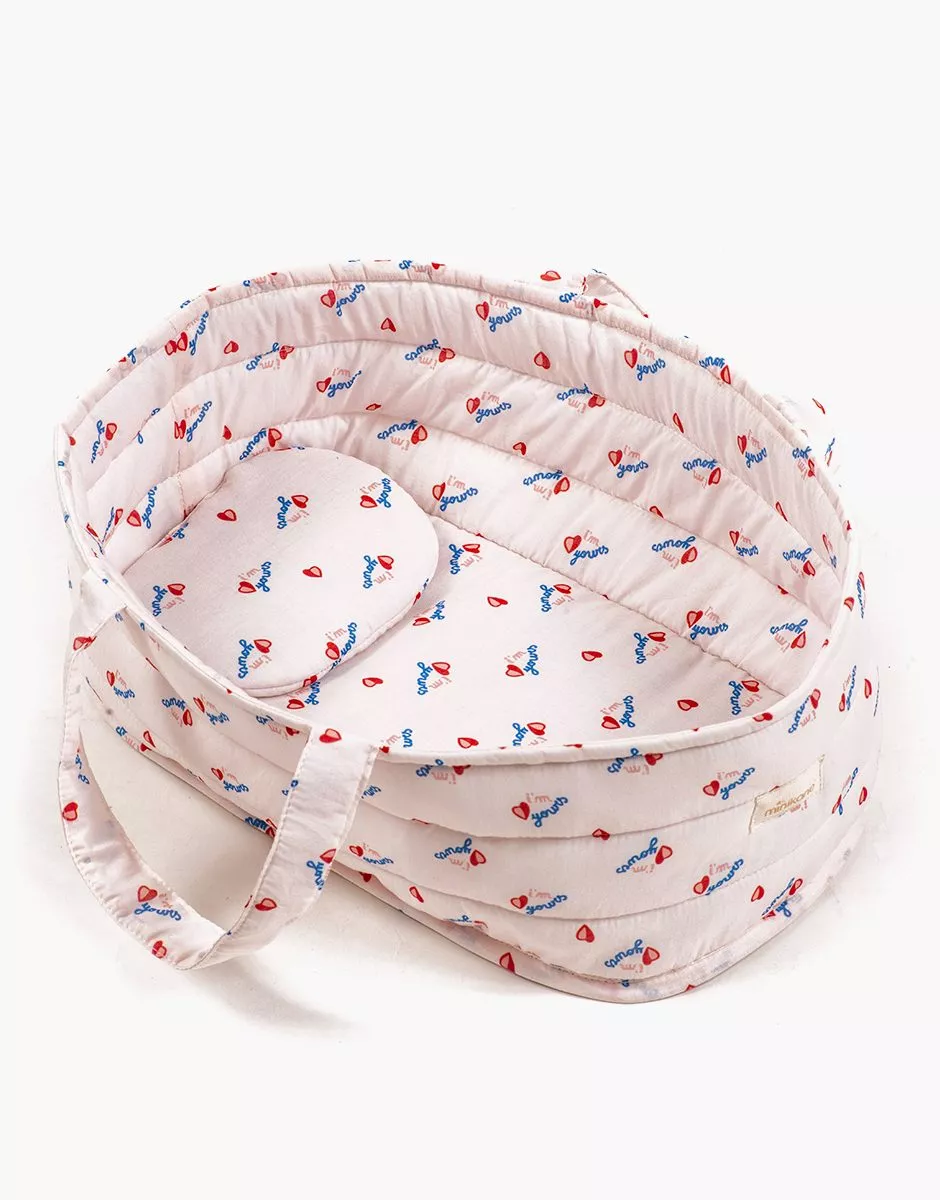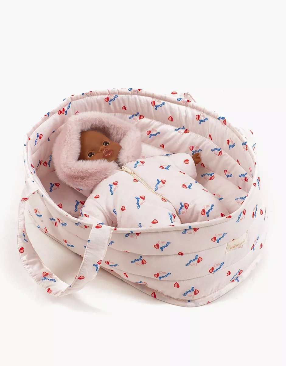 Offrez un doux nid à vos poupées avec ce couffin en coton “I’m Yours” de la marque MINIKANE, conçu pour les moments de repos, la sieste ou la mise au lit. Le couffin, accompagné de son oreiller moelleux, recrée un univers rassurant et chaleureux — idéal pour les jeux d’imitation et les routines de couchage. Grâce à ses anses pratiques, il peut être transporté facilement, permettant à l’enfant de déplacer la “chambre” de sa poupée d’une pièce à l’autre. Sa conception simple et confortable invite à la tendresse, au soin et à l’imagination : l’enfant peut bercer, coucher, envelopper sa poupée comme un vrai bébé ! Retrouvez la marque MINIKANE chez Bonnie Bonnie !