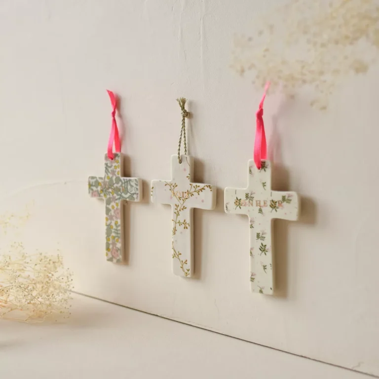 Croix murale Hortense – Amour, un symbole délicat et poétique à poser ou à suspendre pour décorer un mur avec élégance. Son design raffiné et le message doré “Amour” en font un objet de décoration tendre qui apporte chaleur à tout intérieur. Idéal comme cadeau pour une naissance, un baptême ou toute autre occasion spéciale.