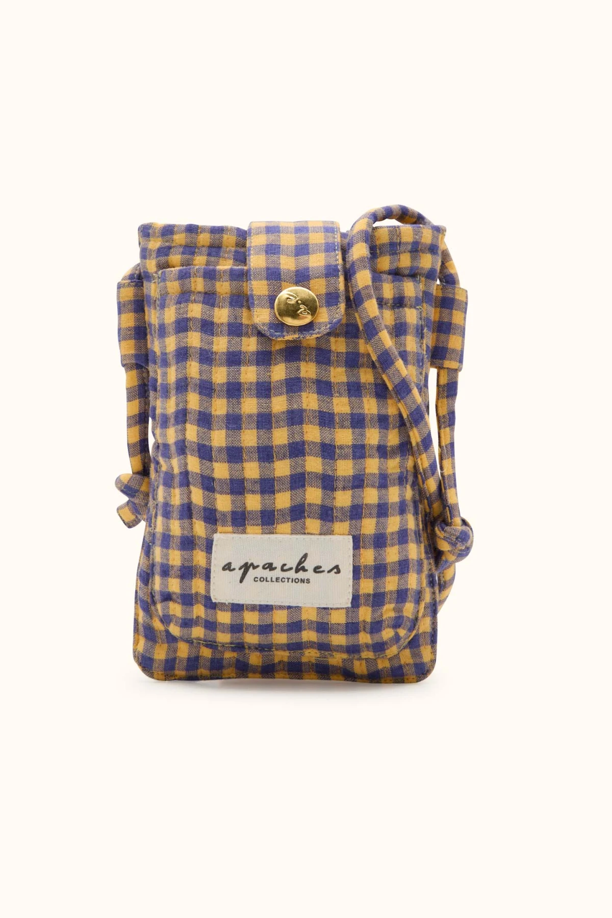 L’étui de téléphone Kolkata de chez APACHES allie fonctionnalité, protection et style artisanal. Confectionné en coton matelassé doux et résistant, il protège votre smartphone tout en apportant une touche d’élégance subtile à votre quotidien. Sa fermeture par bouton-pression sécurisée et sa poche avant pratique vous permettent de garder vos essentiels à portée de main sans encombrement ! Retrouvez la marque APACHES chez Bonnie Bonnie !