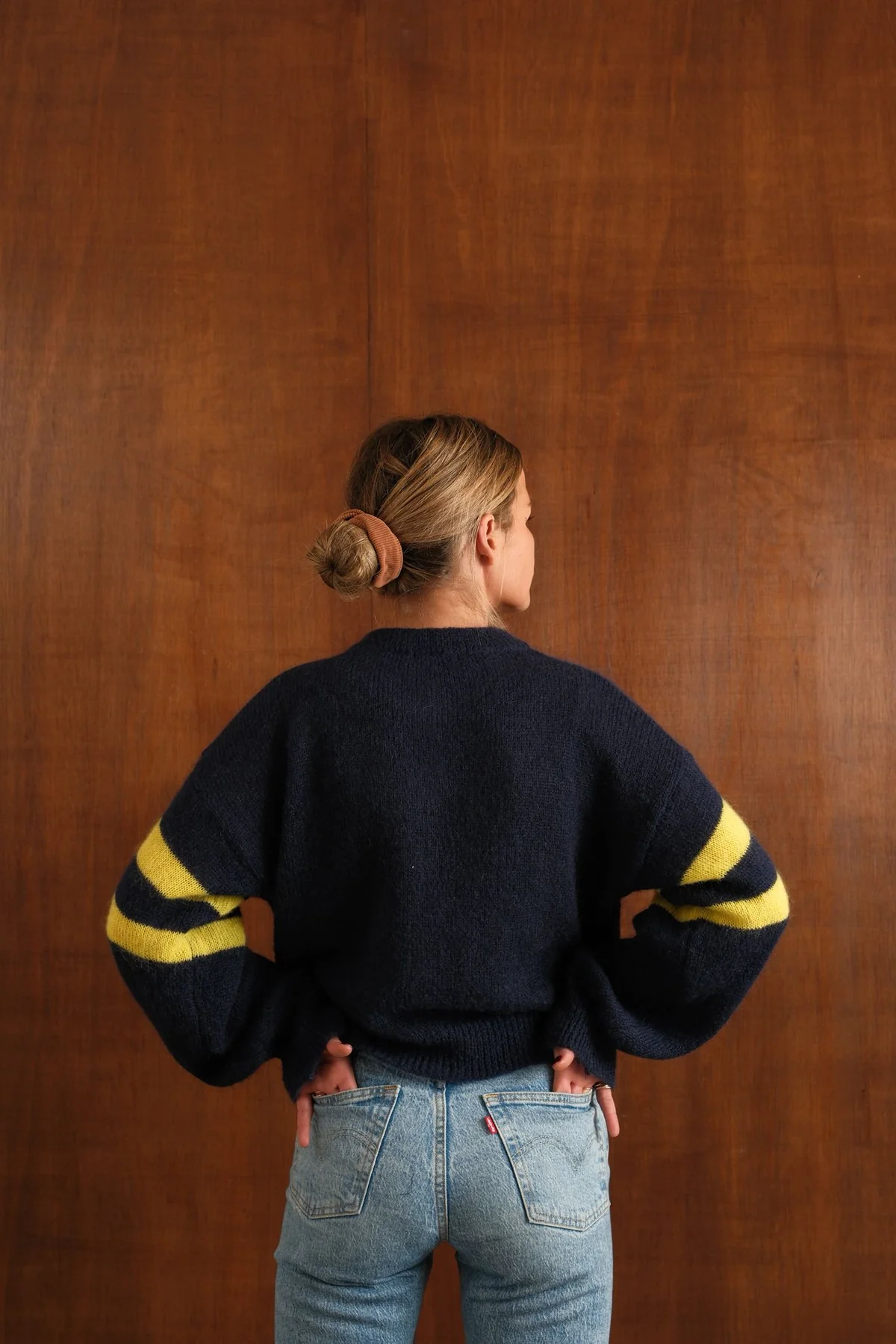 Le Gilet LEAH marine/jaune de chez HORTENSE est une maille raffinée qui combine douceur, confort et une touche de caractère pour un style cosy-chic irrésistible. Sa coupe ample et son col rond classique en font une pièce facile à porter au quotidien, tandis que ses bandes contrastées marine et jaune sur les manches ajoutent une touche moderne et dynamique à votre tenue ! Confectionné dans un mélange de fibres haut de gamme incluant kid mohair léger, polyamide et laine mérinos extrafine, ce gilet offre une sensation de chaleur tout en restant doux au toucher. Les boutons en corne renforcent l’allure élégante et artisanale de cette pièce. Parfait en superposition sur un t-shirt ou une chemise, ce gilet polyvalent s’adapte à de nombreux looks de saison ! Retrouvez la marque HORTENSE chez Bonnie Bonnie !