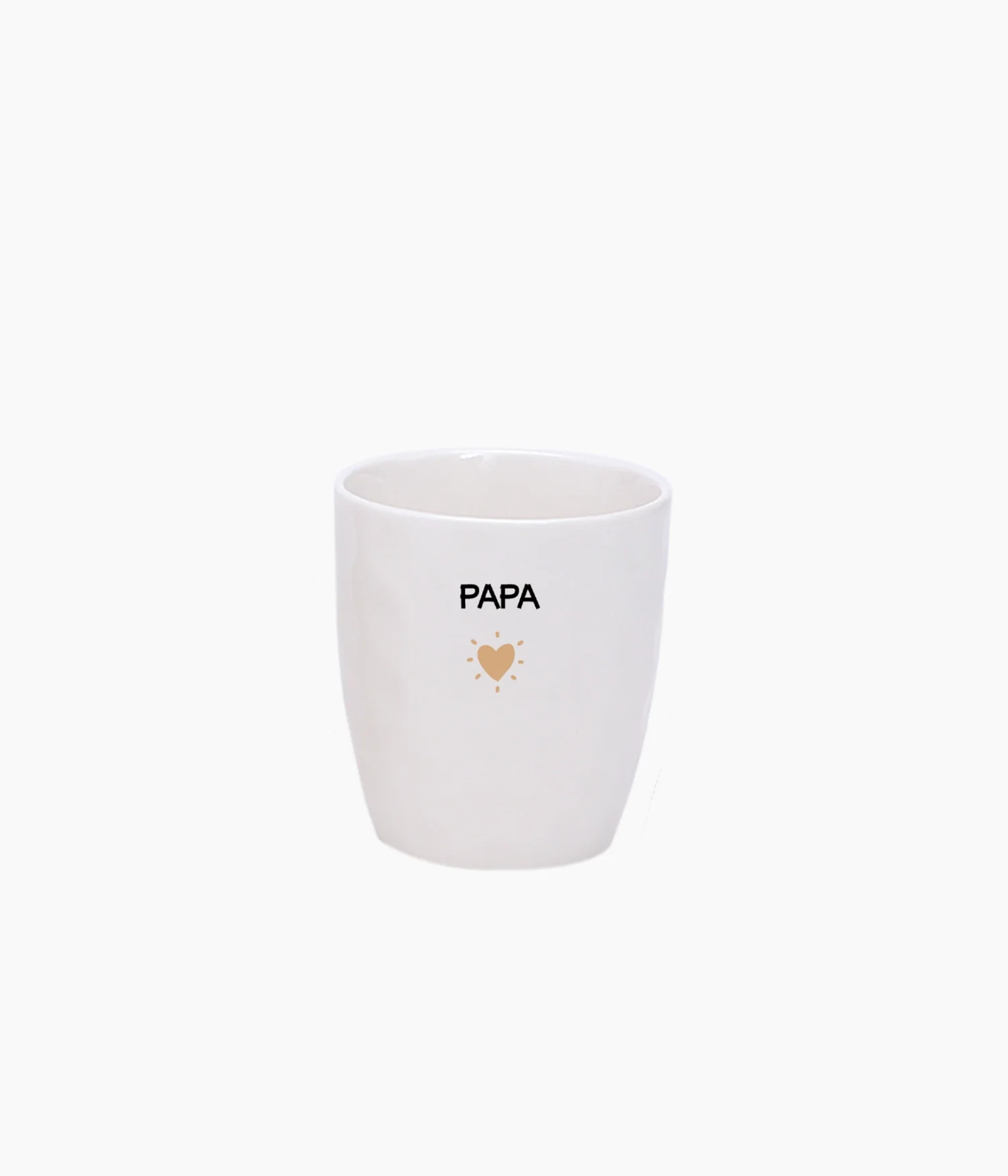 Tasse en faïence blanche avec message Papa, sobre et pleine d’attention pour les pauses café ou thé du quotidien. Une idée cadeau simple et efficace pour faire plaisir à coup sûr.