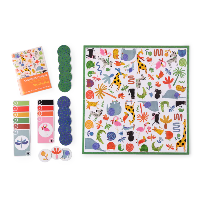 Jeu de cherche et trouve avec les illustrations joyeuses et colorées de la collection les Toupitis de la marque MOULIN ROTY. 2 modes de jeu : collaboratif ou en compétition. Contient 1 plateau, 55 cartes et 10 cartes défis. À partir de 2 joueurs. Dès 2 ans ! Retrouvez la marque MOULIN ROTY chez Bonnie Bonnie !