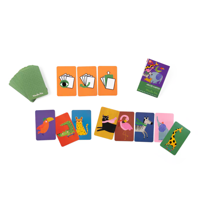 Jeu de cartes illustré de la collection Les Toupitis de la marque MOULIN ROTY. Il faut être le premier à réunir 4 cartes de la même famille d'animaux, puis la nommer pour remporter la partie. Gare aux 3 cartes action qui corsent le jeu ! Contient 8 familles de 4 cartes. Dès 4 ans ! Retrouvez la marque MOULIN ROTY chez Bonnie Bonnie !