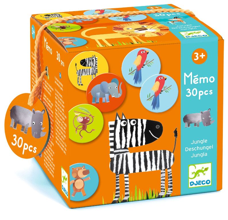 Offrez un moment ludique et stimulant avec ce jeu de mémoire Mémo Jungle de Djeco, parfait pour les jeunes enfants. Sur le thème coloré et amusant des animaux de la jungle, ce jeu invite les participants à retourner des cartes pour retrouver des paires identiques. À chaque tour, les joueurs doivent faire preuve d’attention et de mémoire afin de se souvenir des positions des différentes tuiles. Adapté dès 3 ans, ce jeu éducatif favorise le développement de la concentration et des capacités d’observation tout en garantissant des parties rapides et joyeuses à partager en famille ou entre amis ! Retrouvez la marque DJECO chez Bonnie Bonnie !