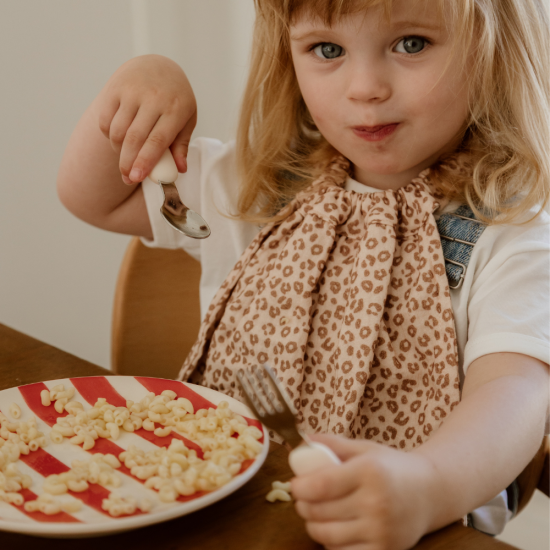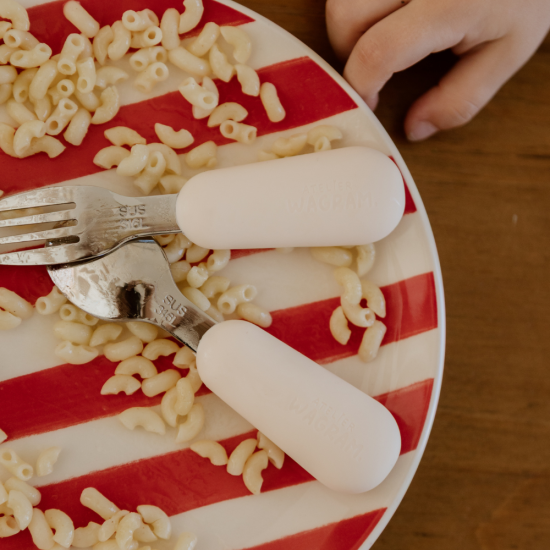 Accompagnez les premiers repas de bébé avec élégance grâce à ce kit de couverts “Crème” de Atelier Wagram. Pensés pour la morphologie des tout-petits, ces couverts associent un manche en silicone alimentaire (sans BPA) à des embouts en acier inoxydable, alliant confort, sécurité et durabilité. La forme des embouts (cuillère peu profonde, fourchette à dents arrondies) est étudiée pour ne pas blesser bébé tout en facilitant la prise de nourriture. Le kit est lavable au lave-vaisselle, ce qui le rend pratique au quotidien pour les parents ! Retrouvez la marque ATELIER WAGRAM chez Bonnie Bonnie !