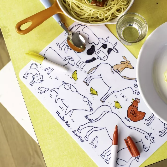 Colorie, efface et recommence à l'infini avec ce mini set Super Petit en silicone et ses 4 feutres de la marque MOULIN ROTY. Un côté coloriage à partir d'une illustration d'Aujourd'hui c'est mercredi et un côté dessin libre. Facile à transporter et à nettoyer ! Retrouvez la marque MOULIN ROTY chez Bonnie Bonnie !