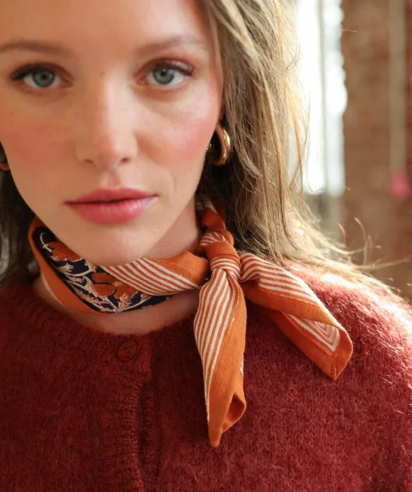 Le foulard « Pia navy » de Bëllemme se distingue par sa couleur safran lumineuse et son format compact (50 × 50 cm). Confectionné en coton 100 % tout doux, il est pensé pour convenir à la fois aux adultes et aux enfants.