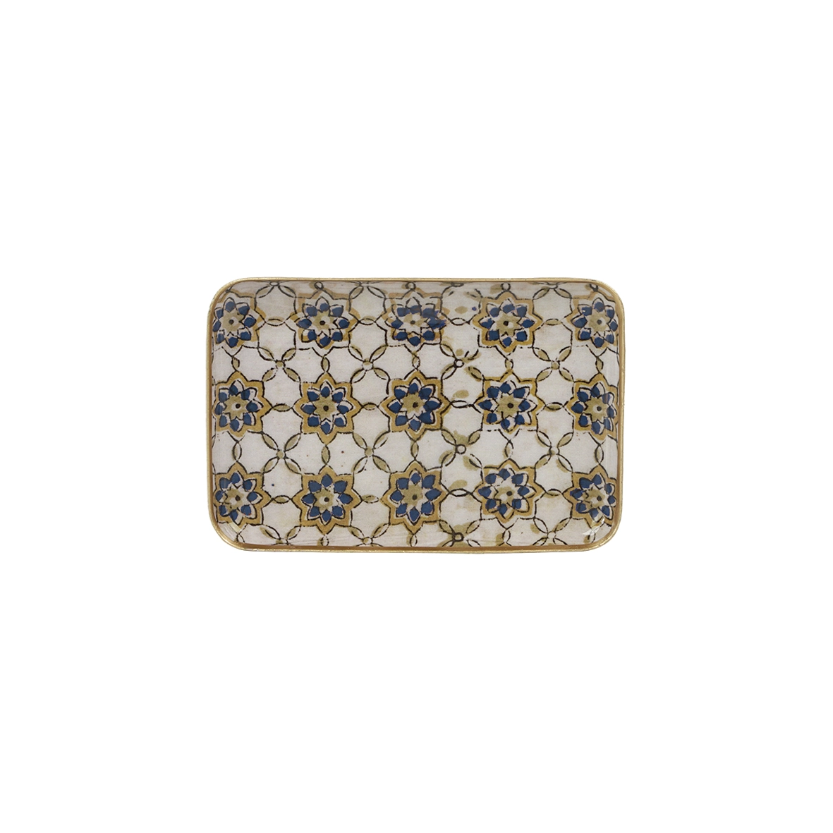Plateau métal zéllige 10×15 cm ocre/bleu