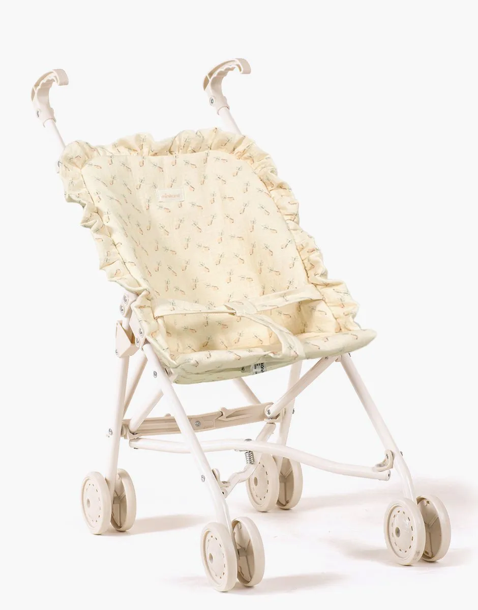 Offrez à votre enfant le plus élégant des accessoires de promenade avec cette poussette signée Minikane. Habillée de sa magnifique assise en gaze de coton au motif "Hélène" et ornée de volants délicats, elle combine un charme rétro avec une structure moderne et robuste pour emmener ses poupées partout.