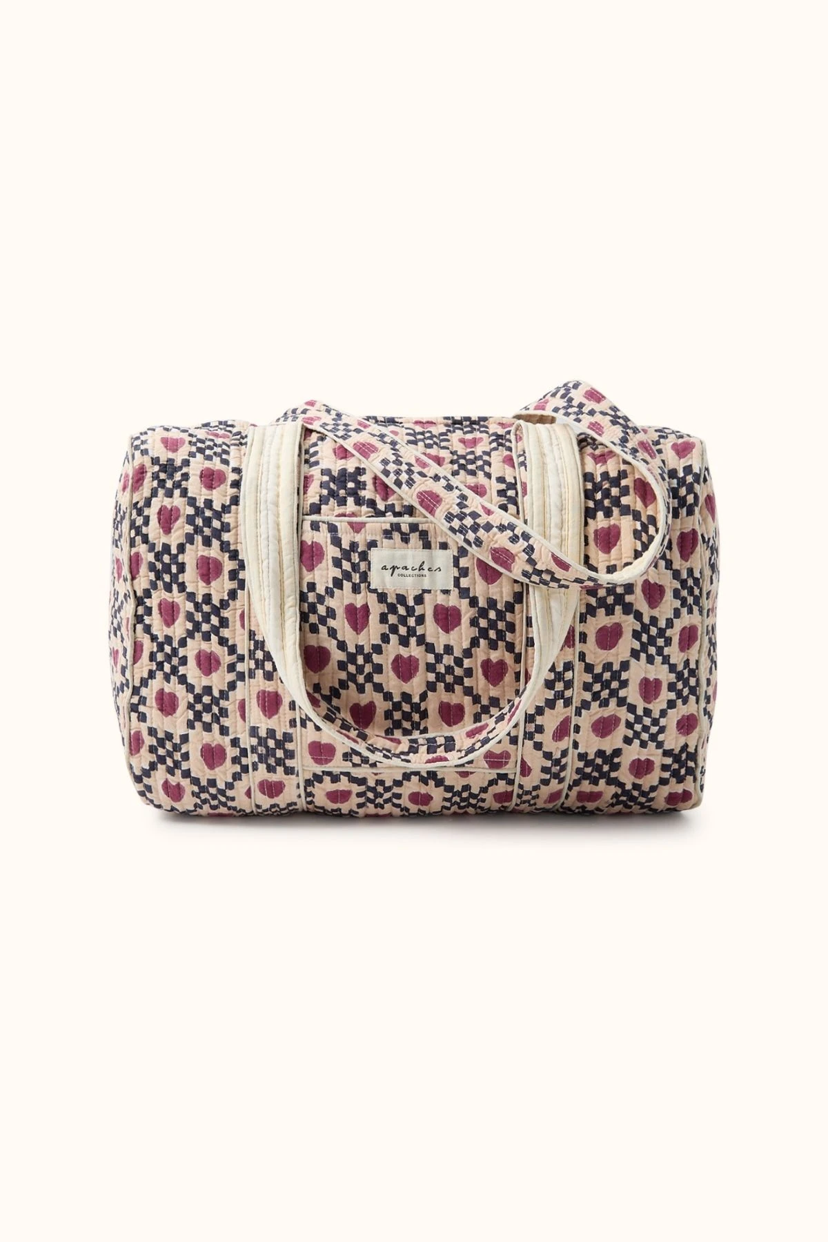 Découvrez le sac Buddha AMOR de la marque APACHES en coton matelassé, orné de cœurs stylisés et de graphismes doux. Pratique avec ses poches plaquées, il est idéal comme sac à langer ou sac 48h. Alliant style et fonctionnalité, ce sac accompagne parents et voyageurs au quotidien avec élégance et légèreté. Retrouvez la marque APACHES chez Bonnie Bonnie !