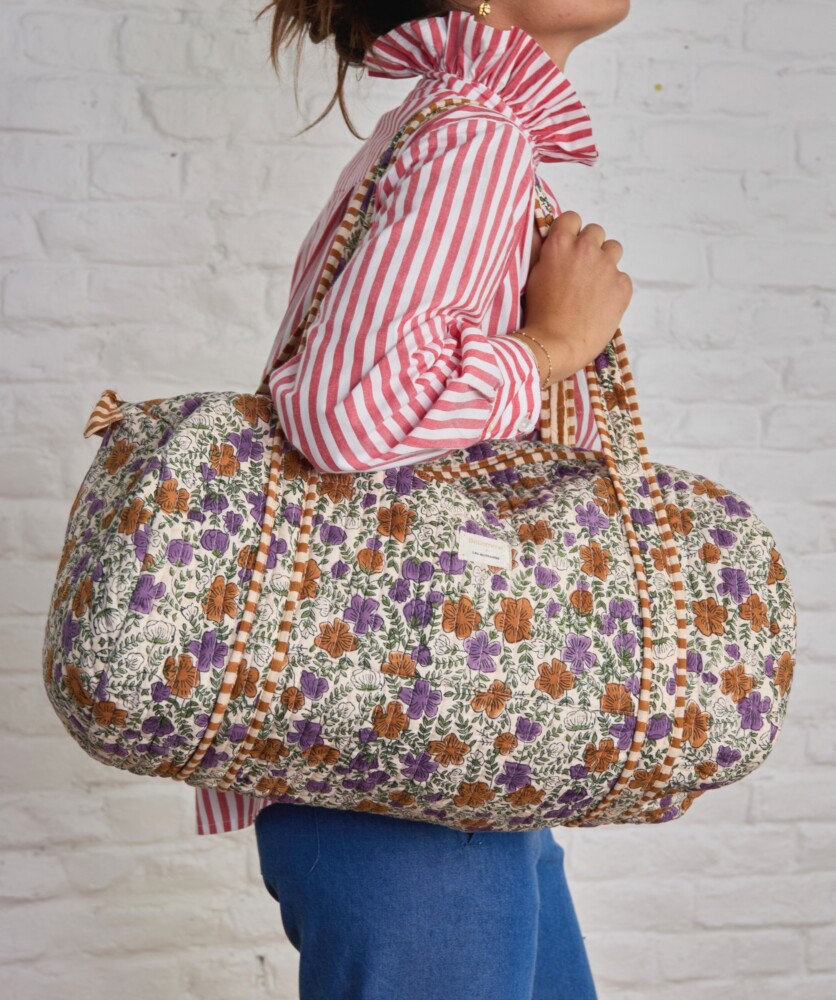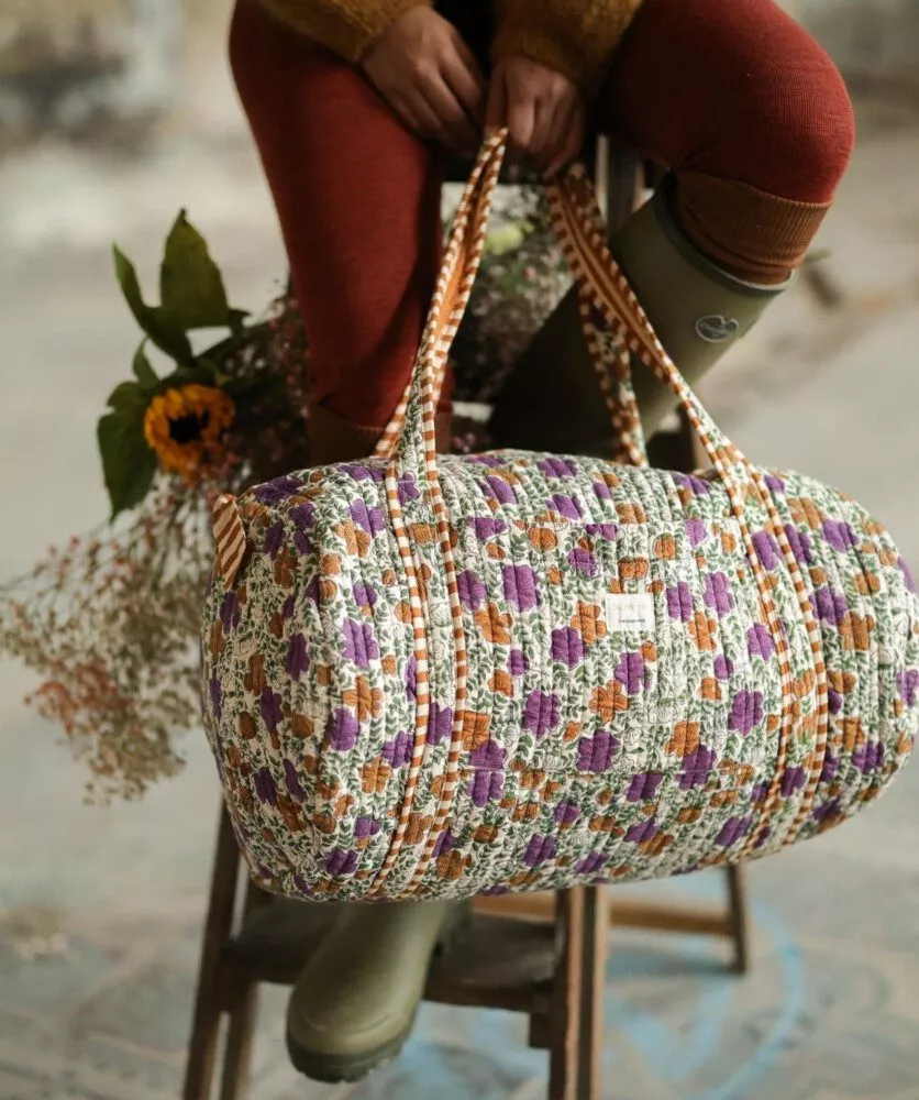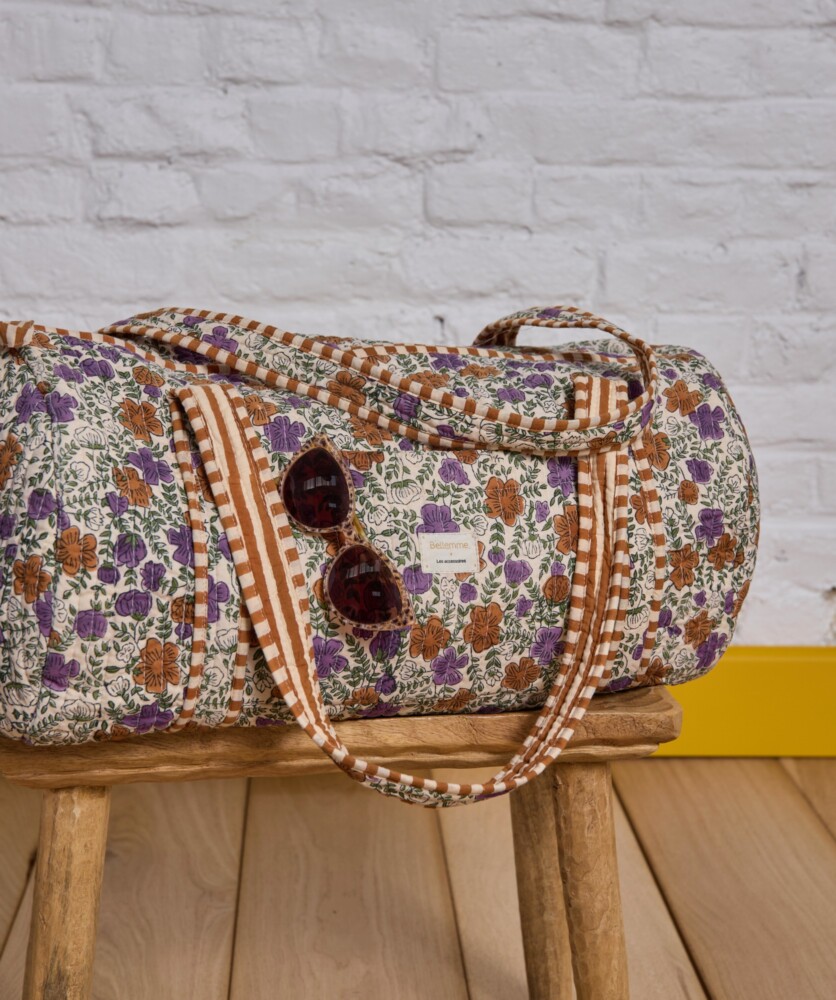 Le sac week‑end « Ellis Violette » de Bëllemme combine élégance, praticité et finitions soignées. Il est fabriqué en 100 % coton, coloris violette, et présente un format XL adapté aux escapades ou tâches quotidiennes.