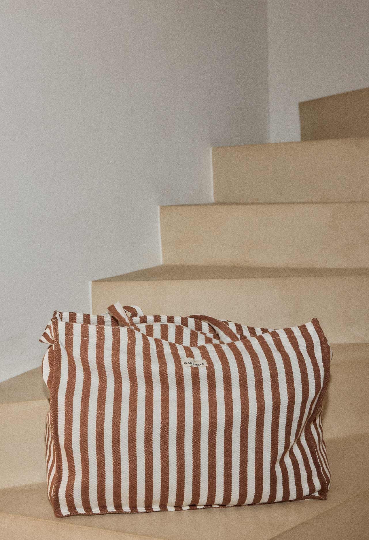 Sac week-end en coton rayures moka