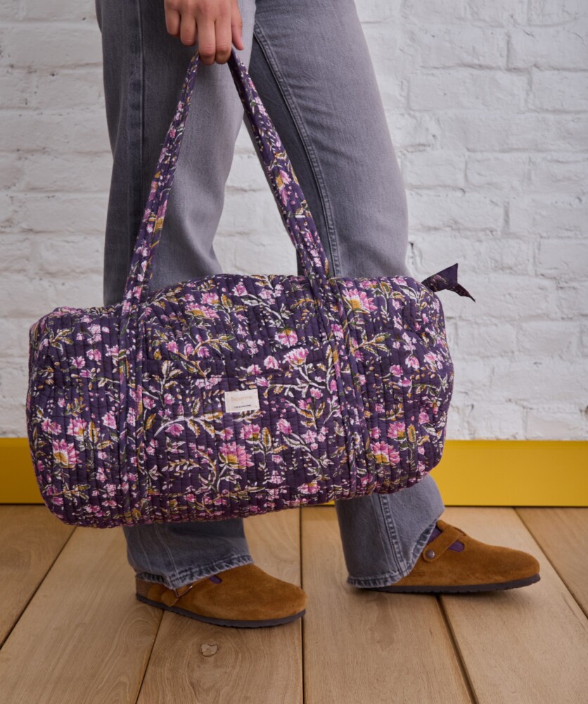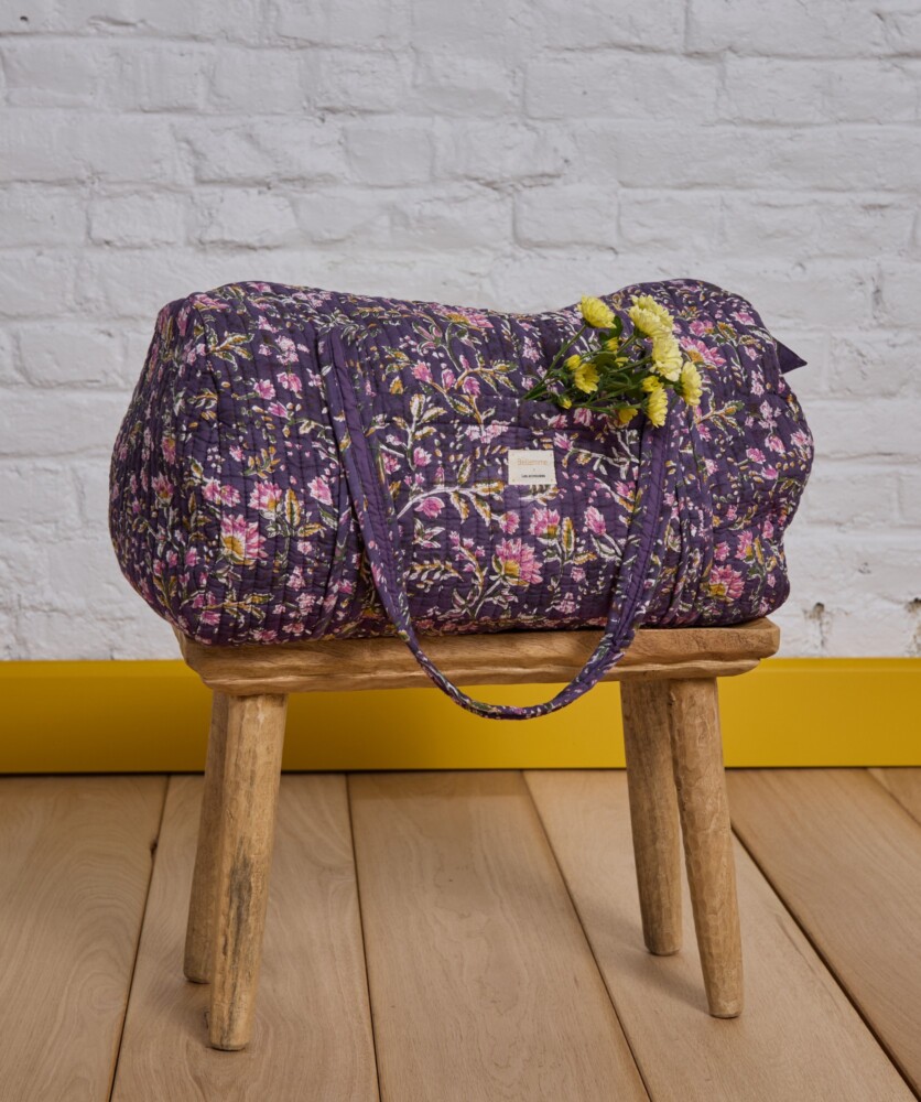 Le sac week‑end Rhapsody Purple de Bëllemme associe élégance, matière premium et praticité au quotidien. Conçu en 100 % coton matelassé, il affiche un motif “Rhapsody” dans une teinte violet profond.