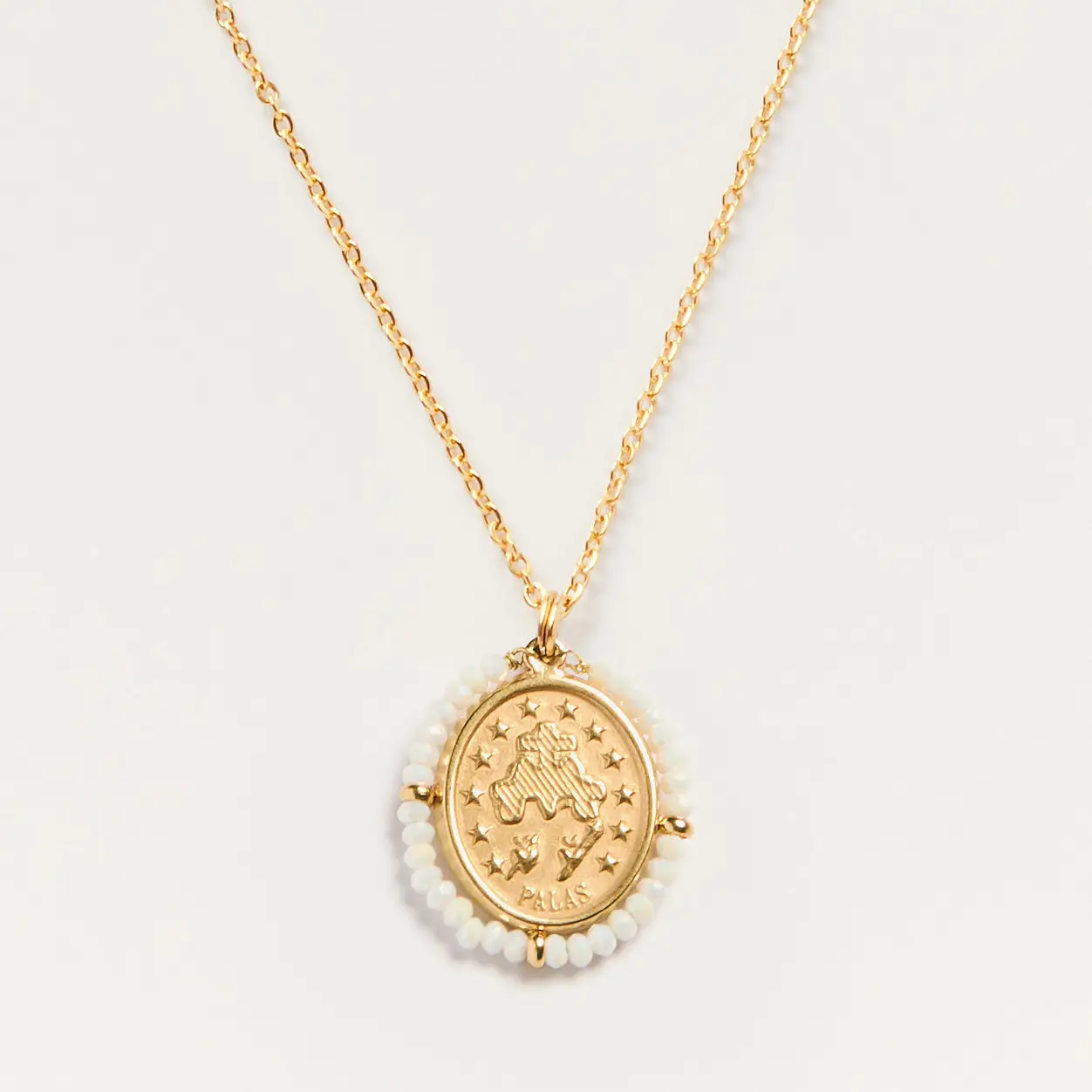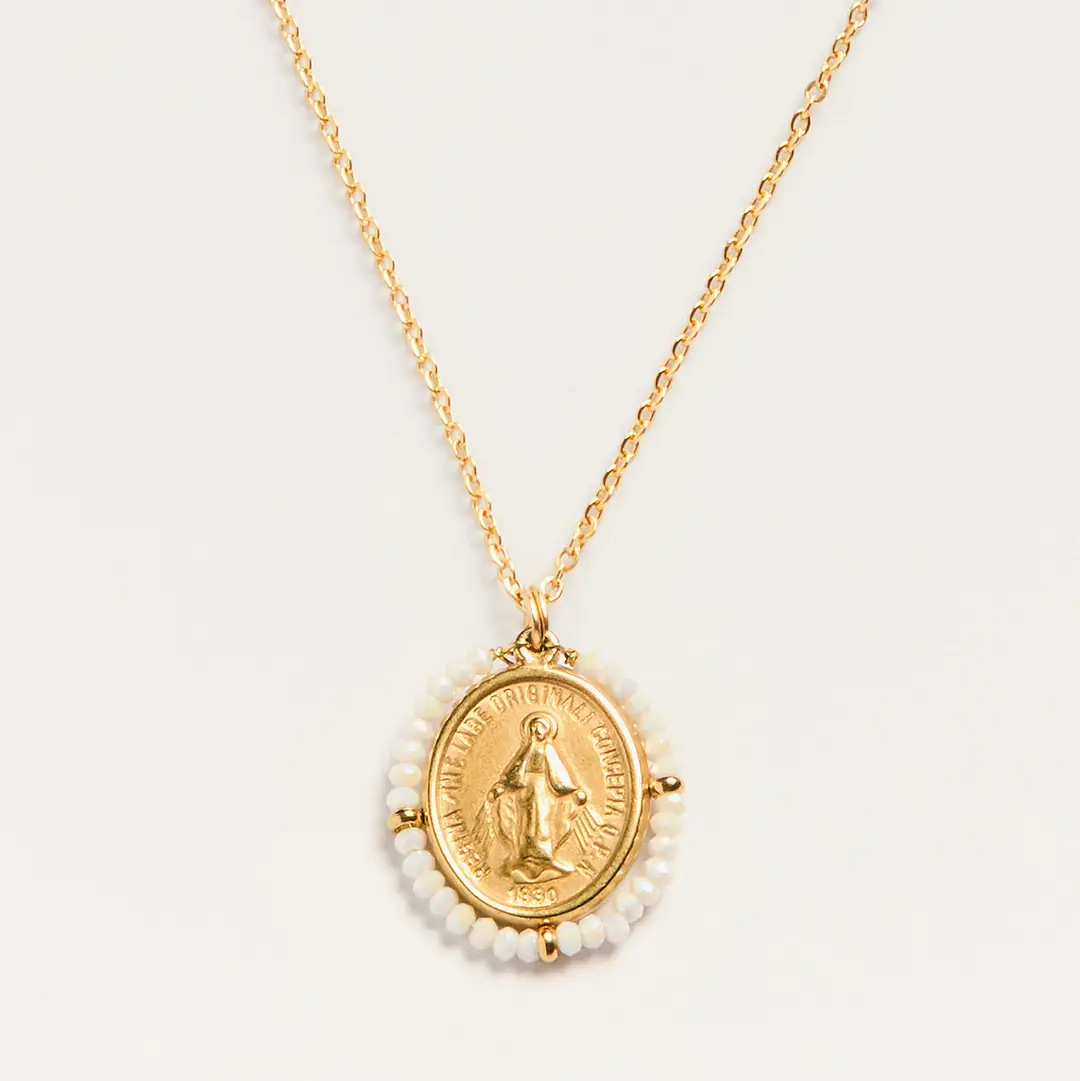 Ce collier « Santa Maria Shiny Cream »de chez PALAS, combine élégance intemporelle et modernité subtile grâce à sa médaille dorée sertie de pierres blanches scintillantes. Monté sur une chaîne délicate en acier inoxydable doré, ce bijou est hypoallergénique et ne ternit pas, ce qui en fait un accessoire fiable et confortable à porter au quotidien. Inspiré de la célèbre médaille Santa Maria, ce collier se marie facilement avec toutes les tenues, que ce soit pour un look casual chic ou une tenue plus habillée. Léger et raffiné, il constitue également une idée cadeau parfaite pour offrir une touche d’éclat et de sophistication ! Retrouvez la marque PALAS chez Bonnie Bonnie !