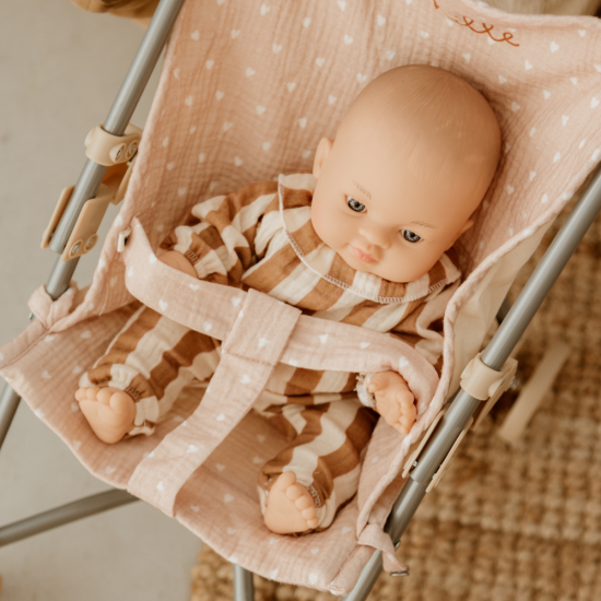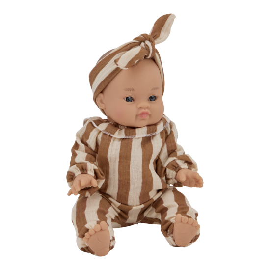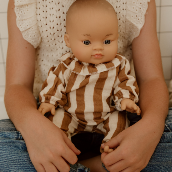 Habillez une poupée avec raffinement grâce à cette tenue « rayures larges » de la marque Atelier Wagram, conçue pour poupées de 34 cm. Fabriquée à partir de 100 % gaze de coton, elle allie légèreté, douceur et esthétique soignée.