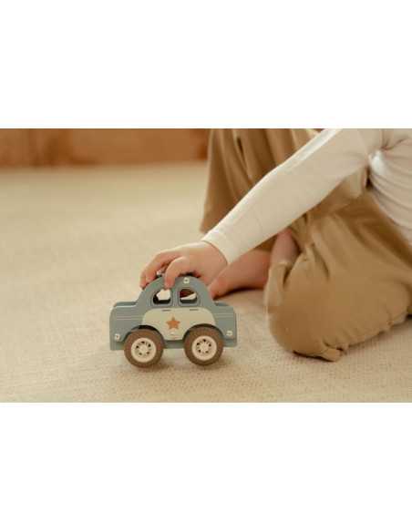 Voiture de police en bois dès 18 mois, avec roues en caoutchouc pour un roulement fluide et un policier en figurine. Parfaite pour stimuler la motricité et l’imagination à travers les jeux de rôle. Un jouet robuste et coloré pour patrouiller en ville !